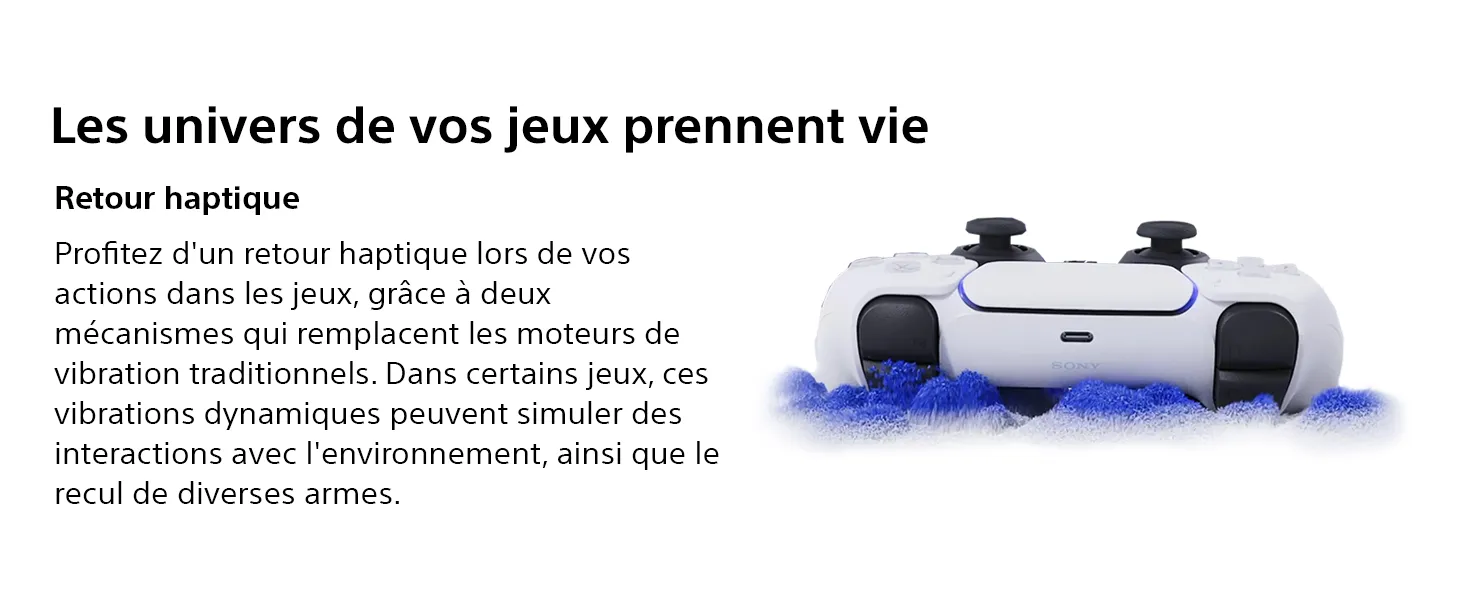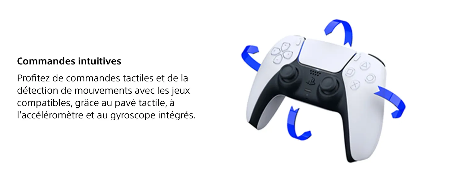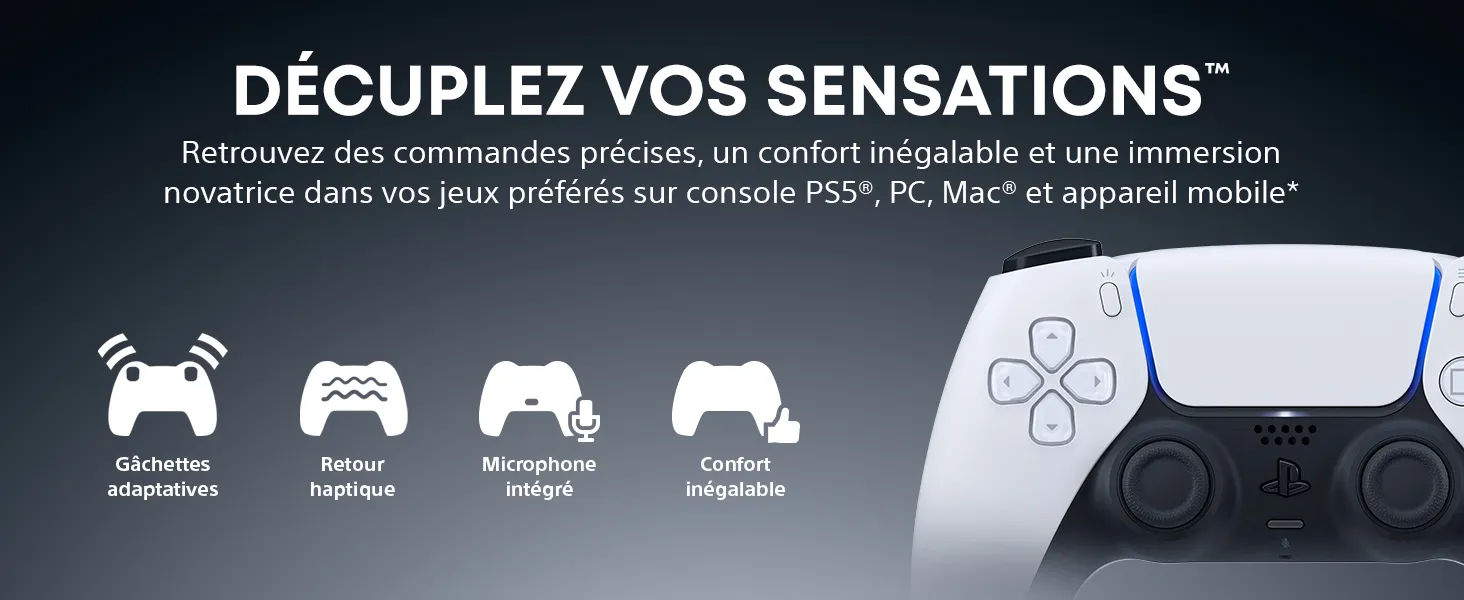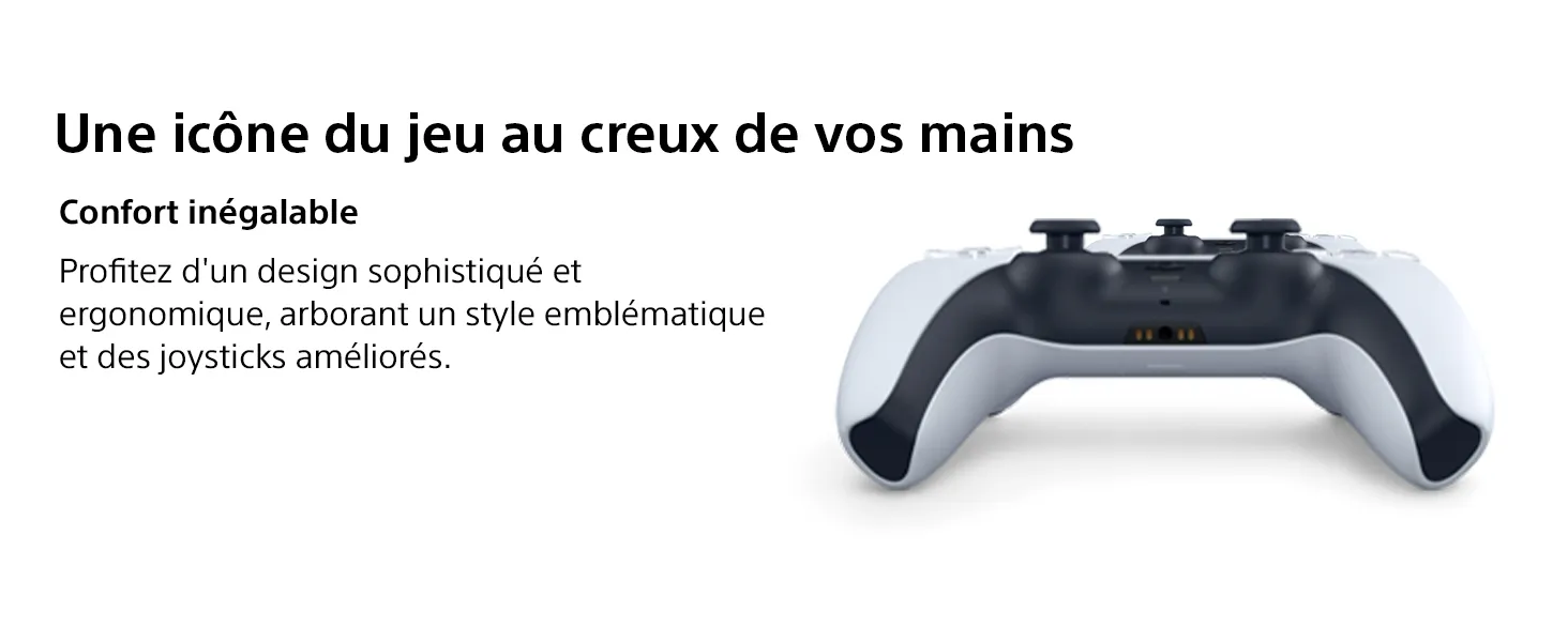 Explorez la manette Sony Playstation 5 DualSense pour une expérience de jeu innovante au Maroc. Confortable et ergonomique pour des séances de jeu prolongées, la manette PS5 DualSense est conçue avec un souci du détail pour offrir un confort ergonomique exceptionnel, vous permettant de jouer pendant des heures sans fatigue sur votre console de jeux Playstation 5. Disponible en blanc, bleu et noir.