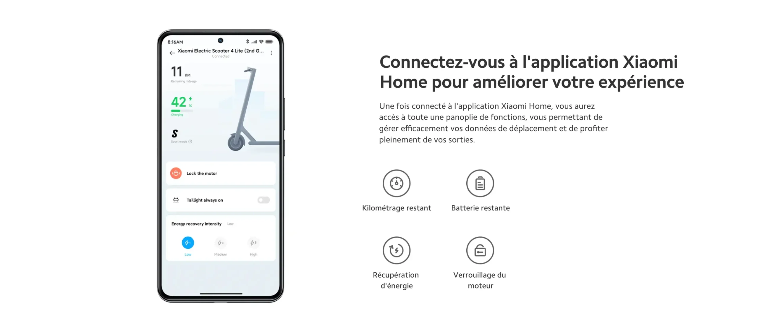 La nouvelle trottinette électrique Xiaomi Electric Scooter 4 Lite 2ème génération est une version améliorée du modèle Electric Scooter 4 Lite de 2023 : son plateau a été agrandi, elle est pliable en 3 secondes, les pneus de 10 pouces sont désormais présents (contre 8,5 pouces auparavant), le moteur est de 300 W qui atteint 25km/h, et son autonomie théorique maximale atteint 25 km. Elle dispose d’un système de freinage double pour garantir l’efficacité et la fiabilité. Elle absorbent les chocs pour une conduite plus confortable, de plus, elle est certifiée IPX4 (étanchéité).