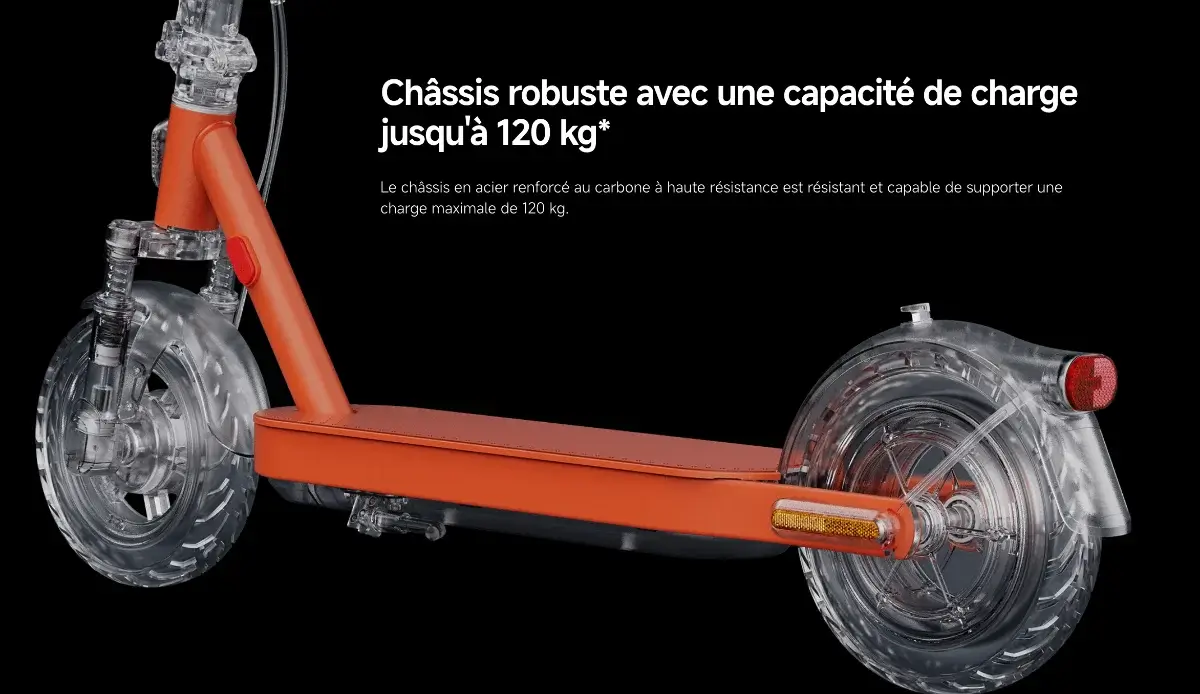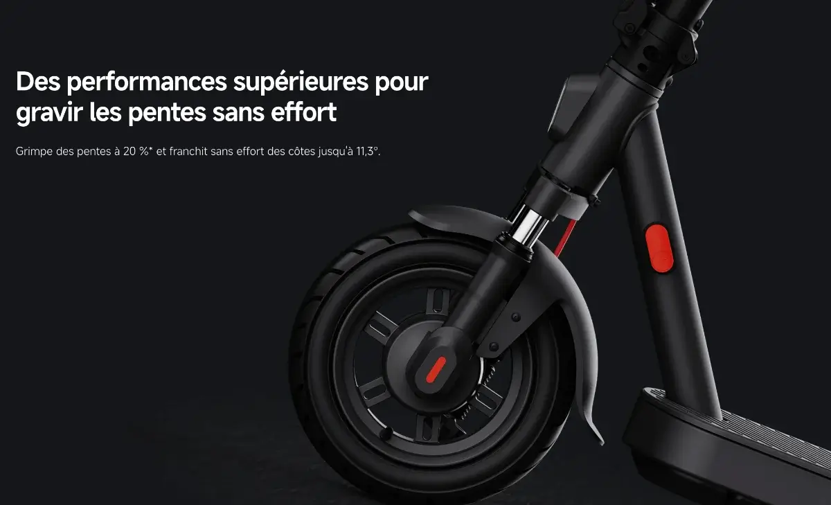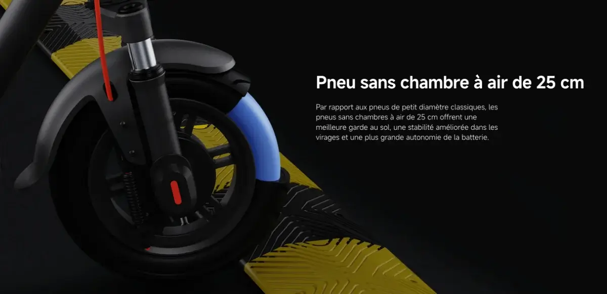 • Pneus : Pneus 25 cm sans chambre à air, faible résistance au roulement